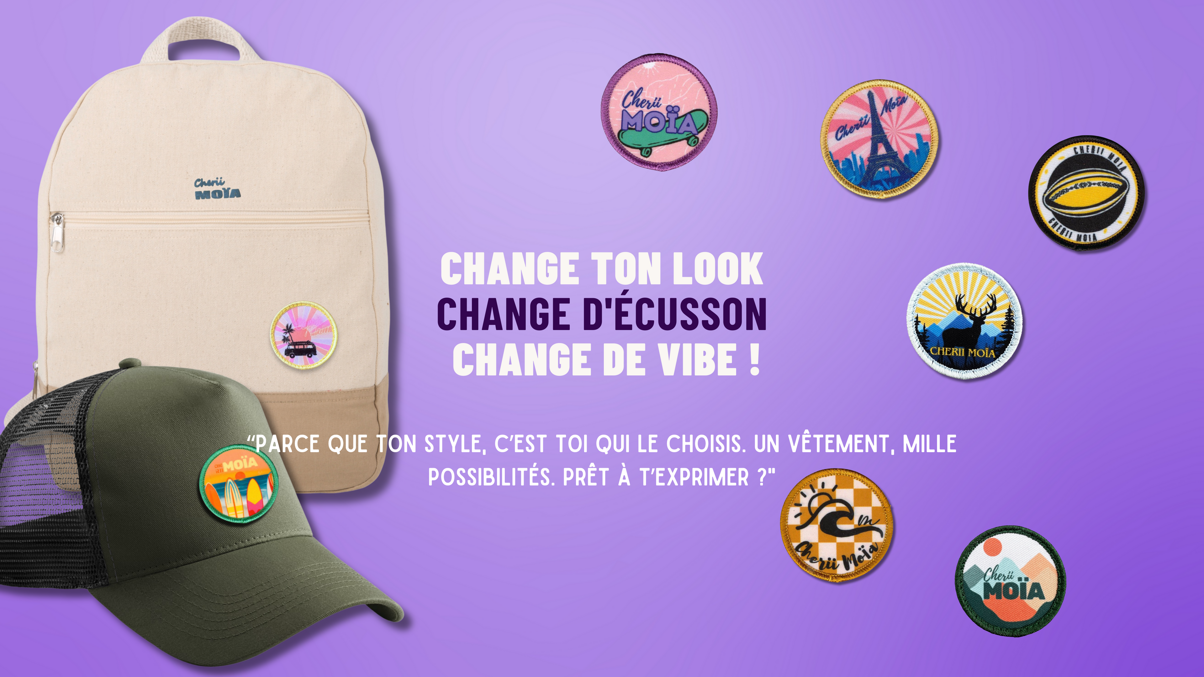 À chaque instant, ton humeur est différente. Pourquoi ton look ne le serait-il pas ? Avec Cherii Moïa, personnalise ton style facilement grâce à nos écussons interchangeables. Prêt pour une transformation instantanée ?